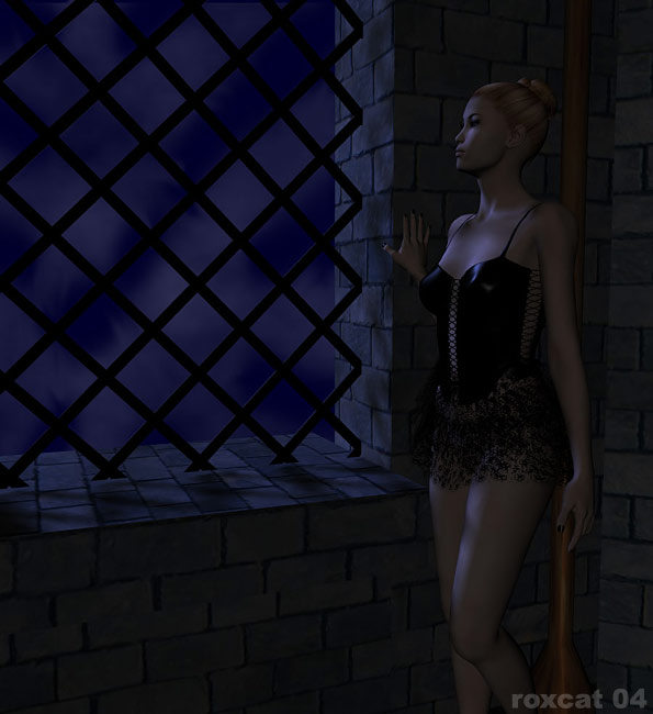 I made this while practising light settings. I wanted it to look like the moon was shining in on her.